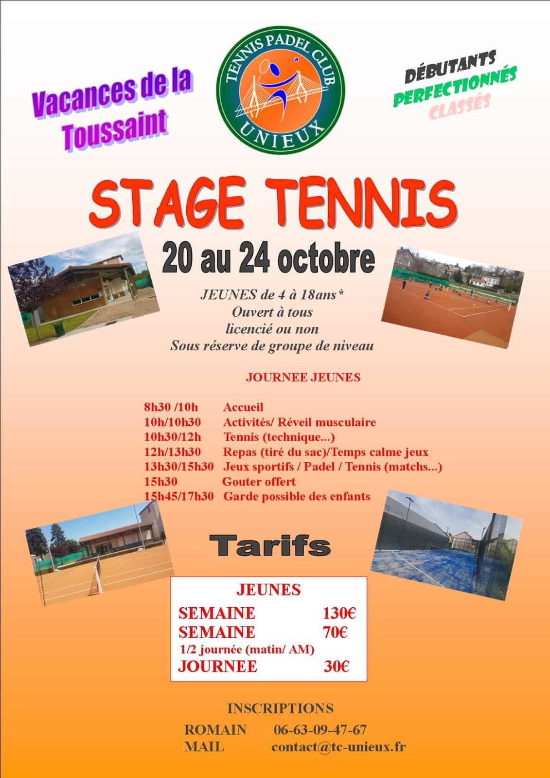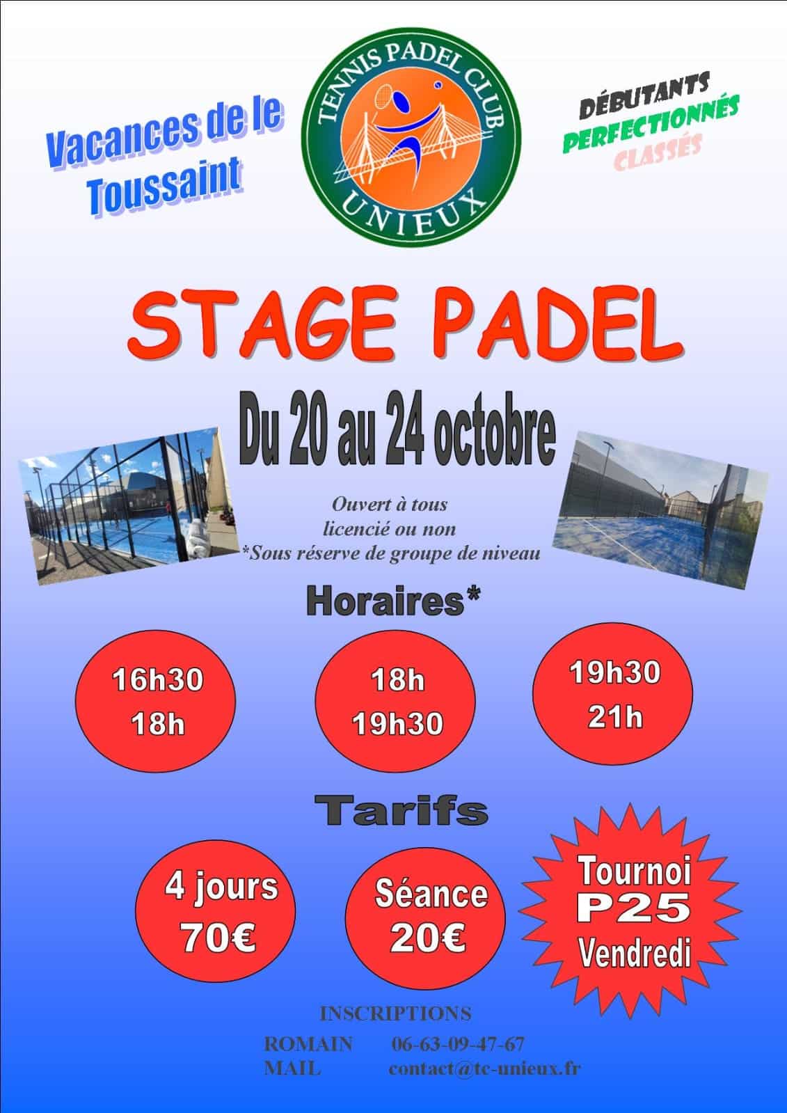 Le Tennis Padel Club de Unieux vous propose, tout au long de l’année, des stages et tournois pour dynamiser la vie du club et vous offrir des occasions de progresser et de vous épanouir. Nous sommes un club chaleureux et familial, dédié à accompagner votre progression et à faciliter votre intégration au sein de notre structure.
